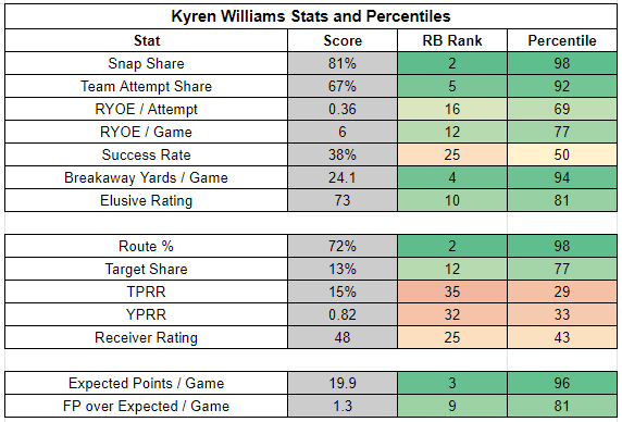 (The stats below are from PFF, NFLfastR, rbsdm.com, RotoViz, FantasyLabs, ESPN, NFL Next Gen, and Fantasy Life).