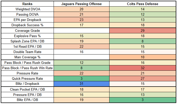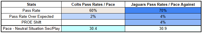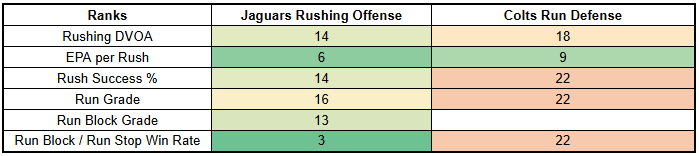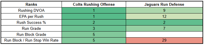 The Colts also have an incentive to pick their spots when calling run plays. The Jaguars have been very strong against the run this year.