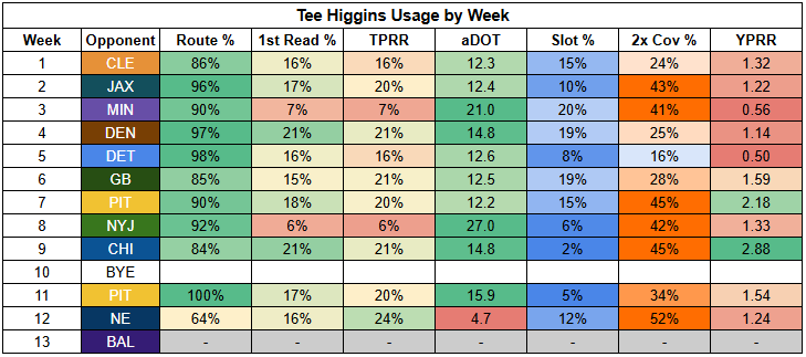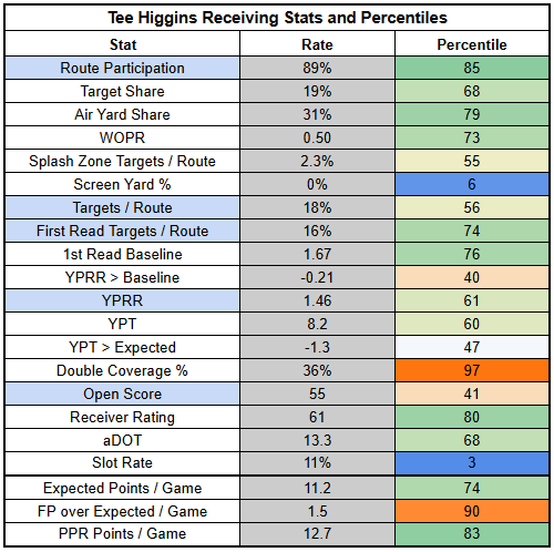 Burrow should have Tee Higgins back in the lineup this week, who practiced in full on Thursday and looks on track to clear the concussion protocol.
