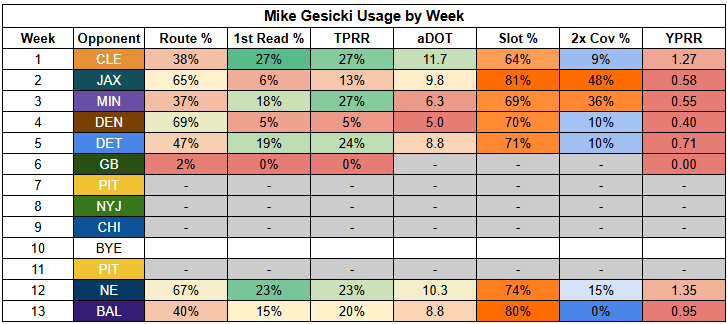 At tight end, things are pretty rough. Mike Gesicki and Noah Fant split time against the Ravens, and neither was productive. With Higgins now expected back, both are very thin bets. I prefer Gesicki, but he's just a high-end TE3.