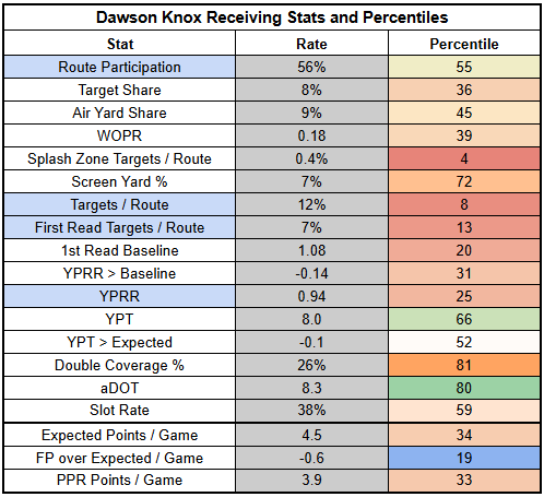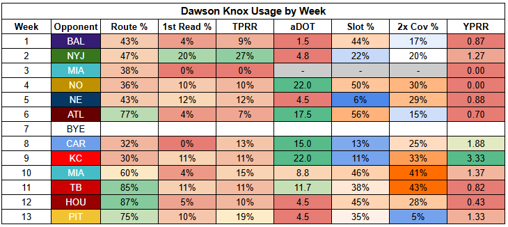While Gabe Davis led the Bills' WRs in routes last week, Dawson Knox actually led the team.