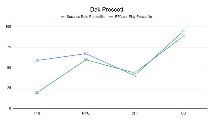 Dak Prescott is coming off a legitimately elite game... in his first game without CeeDee Lamb, and against the best defense he's faced all year. Football is wild.