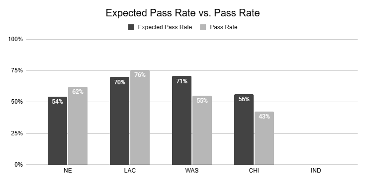 Shane Steichen also showed a willingness to lean into the passing game in a back-and-forth game, posting a season-high 68% pass rate.