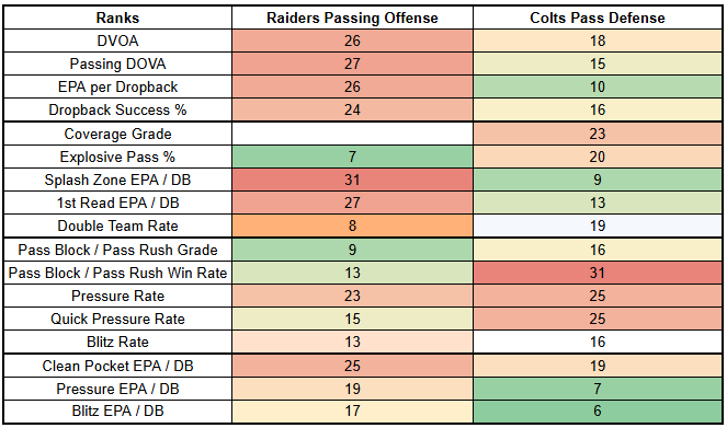 In some ways, this looks like a do-over matchup for the Raiders. Their passing game flopped against a bad pass rush last week. Now they get another bad pass rush...