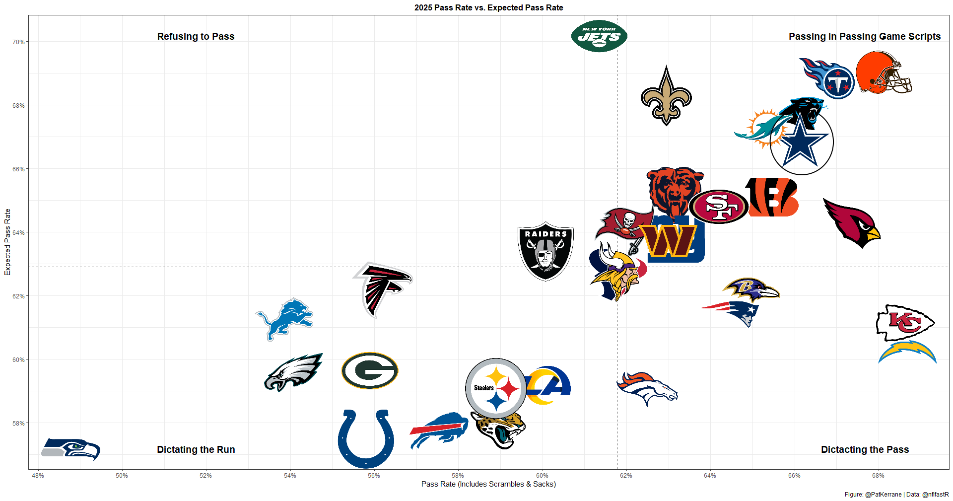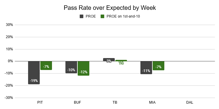 And it's not as if the Cowboys are super committed to the pass. They have a -1% PROE and have operated reasonably in line with game script.