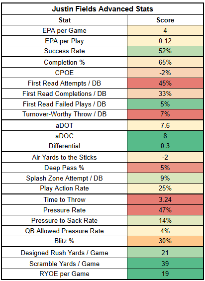 We're still likely to see some frustrating play from Fields here. The Jets have allowed pressure and quick pressure at the highest rate. In other words, even if Fields weren't holding the ball longer than any other QB in the NFL, they'd still be allowing a lot of pressure. And, of course, he is.
