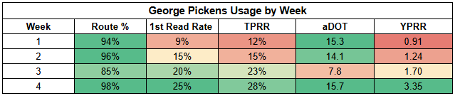 George Pickens is coming off his Cowboys breakout game, but it was actually his second game in a row with strong target numbers.