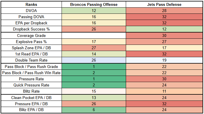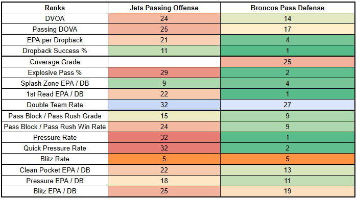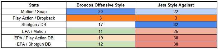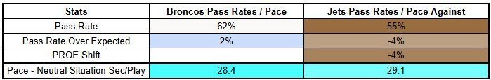 The Jets have also been very poor at defending play action, despite seeing a ton of it. Meanwhile, the Broncos use play action at one of the highest rates in the NFL.