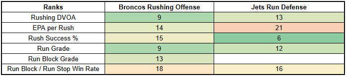 That ceiling is driven by the fact that the Broncos should be in positive game script for much of this game, and by the fact that the Jets are a major run funnel.