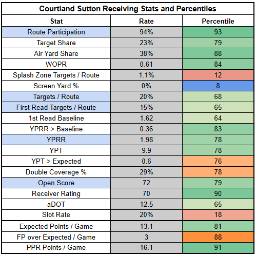 Sutton isn't a dominant No. 1 target, but he's clearly installed as the Broncos' No. 1.