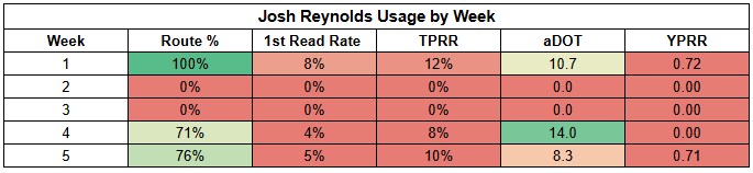 This has allowed teams to pound the rock against them. In Week 1, the Steelers trailed for most of the game and posted a 65% pass rate. But from Week 2 on, Jets opponents have averaged just a 52% pass rate. Basically, when you play the Jets, you play like the Seahawks offense.