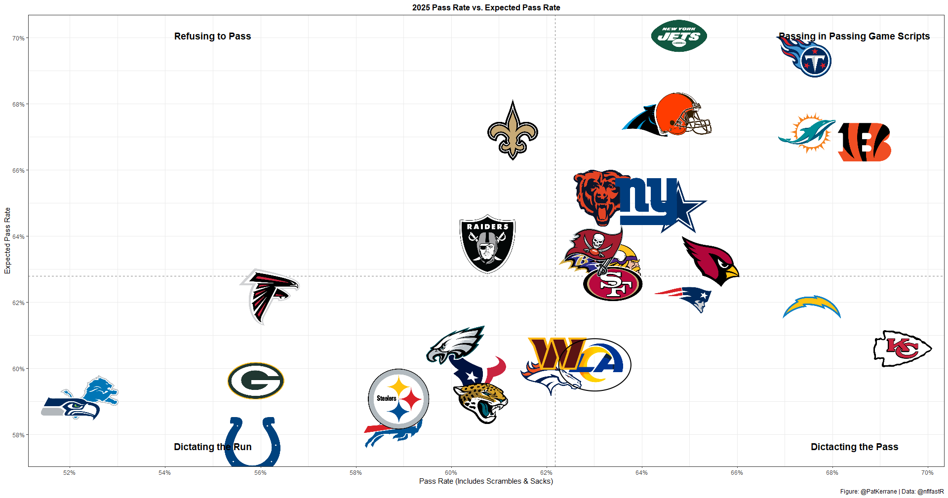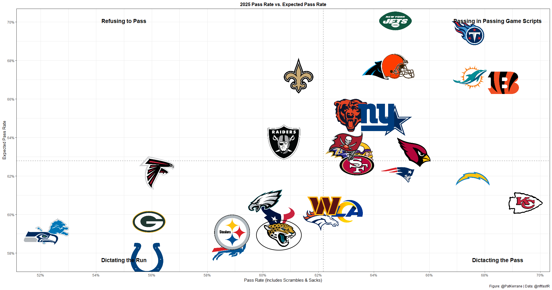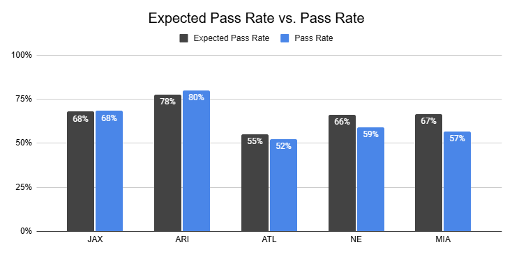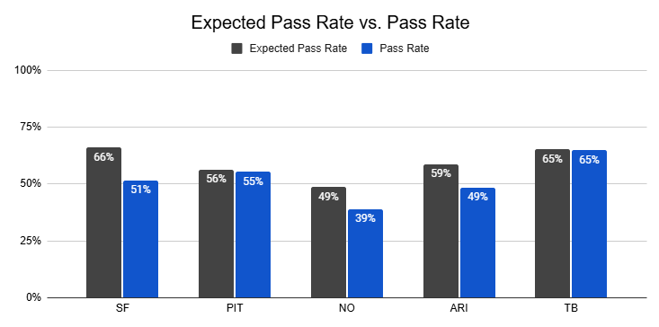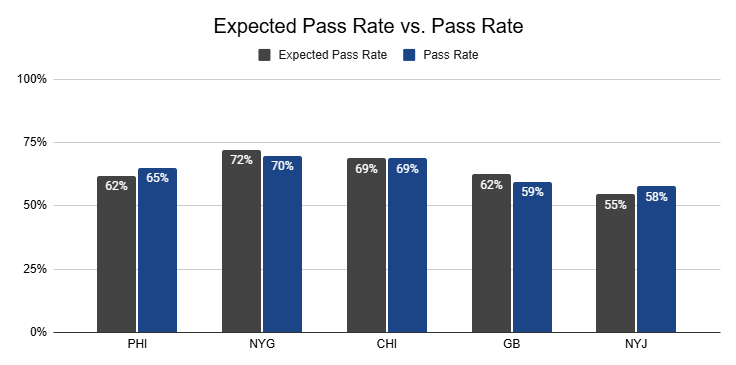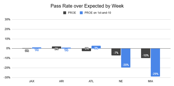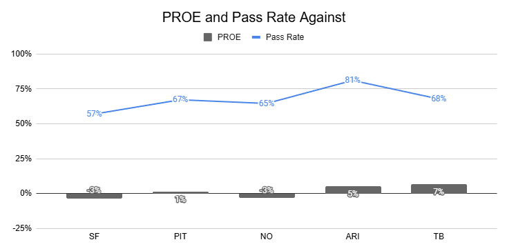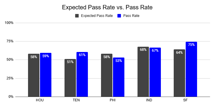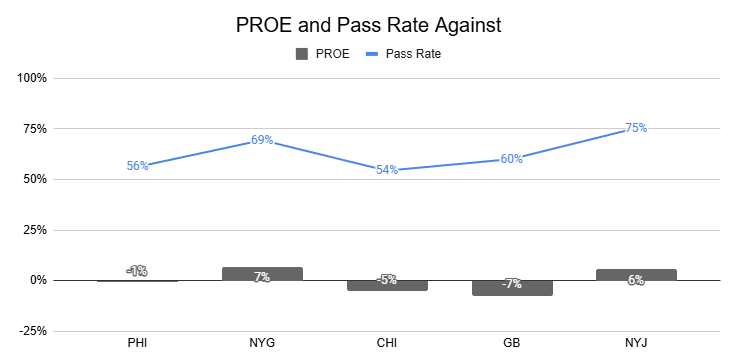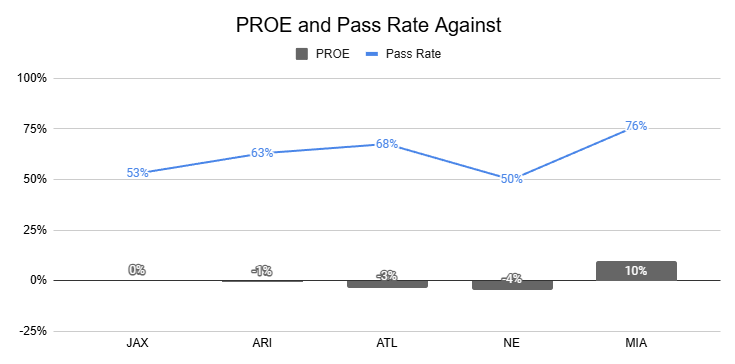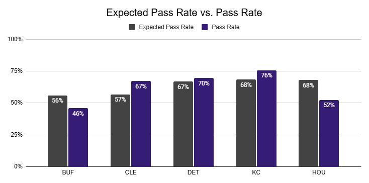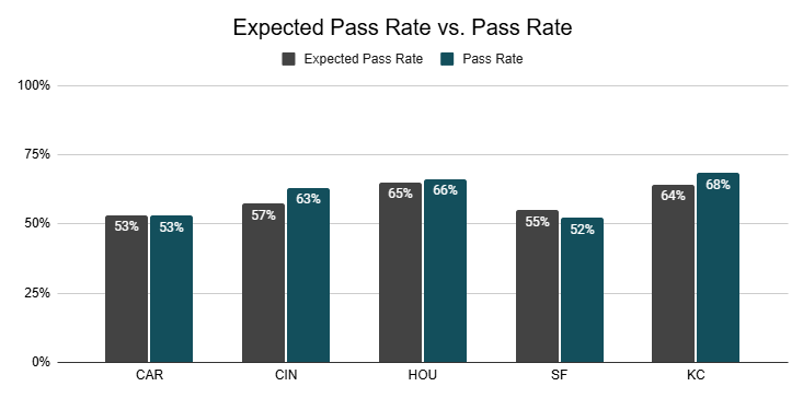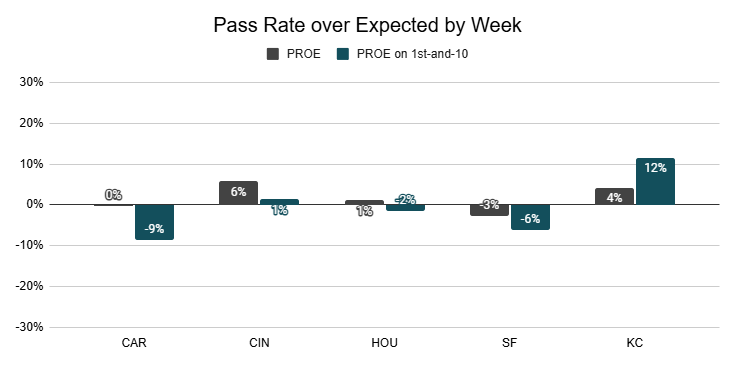 Against the Chiefs, they also posted a season-high 12% PROE on 1st down.