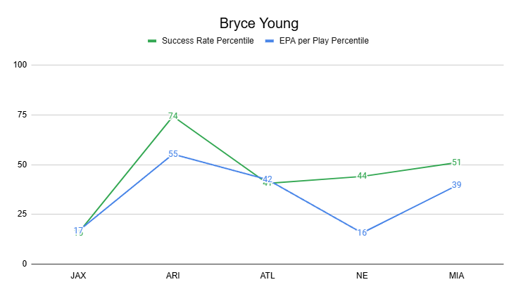 The Panthers are coming off an impressive come-from-behind win against the Dolphins. But from an efficiency perspective, it wasn't a great showing from Bryce Young. Honestly, he hasn't had a truly impressive game all season.
