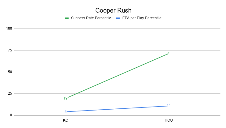 However, Rush was actually pretty good against the Texans from a success rate perspective.