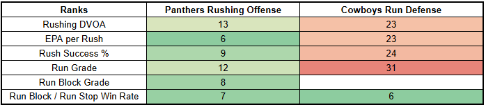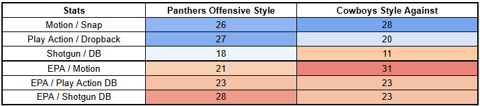 The Cowboys are also highly susceptible to motion and play action... but the Panthers don't use either at a high rate, again highlighting the potential for them to leave meat on the bone.