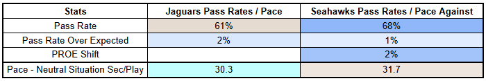 The Jaguars have had a slight lean to the pass this year and are coming off their highest pass rate of the year.