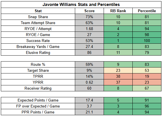 This isn't a locked-in run-heavy setup for Javonte Williams. But Williams is clearly the Cowboys' locked-in No. 1 RB.