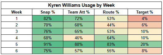 Volume actually looks more uncertain in the run game, where Kyren Williams doesn't have the grip on carries he once did.