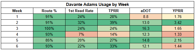From a fantasy perspective, a pivot to the run here isn't a huge concern. There should still be plenty of volume for Adams, and with the ancillary weapons, we're mostly hoping for a cheap TD.