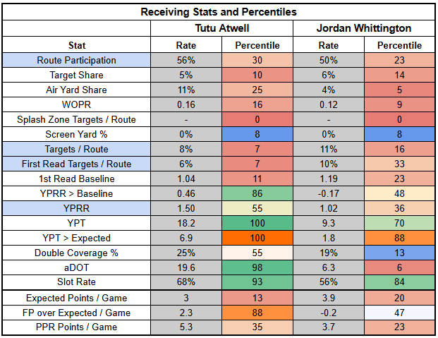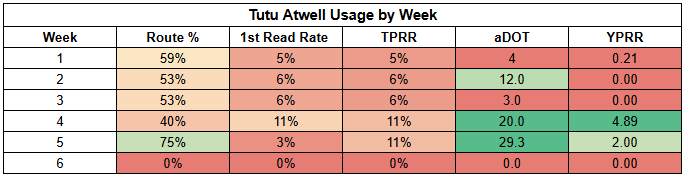 It's also important to note that Tutu Atwell missed Week 6 but will be back this week.