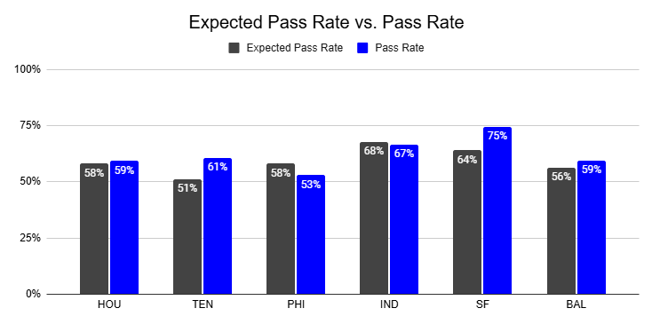 With a 3% PROE, the Rams have had a clear lean to the pass this year. But... until this week, they've also been game planning around Puka Nacua. Without their star WR, they could switch things up.