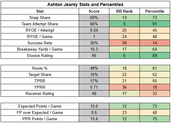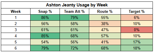 Jeanty's receiving workload has also been much stronger in recent weeks. He's quietly evolving into a true three-down back, which is absolutely crucial for this matchup.