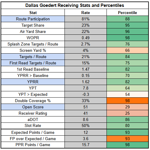 (The stats below are from PFF, NFLfastR, rbsdm.com, RotoViz, FantasyLabs, Fantasy Life, Fantasy Points, ESPN, FTN, and NFL Next Gen).
