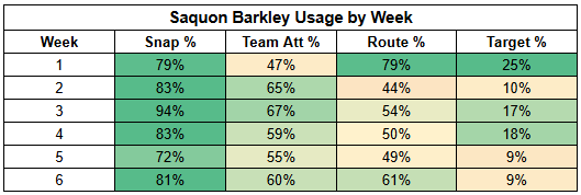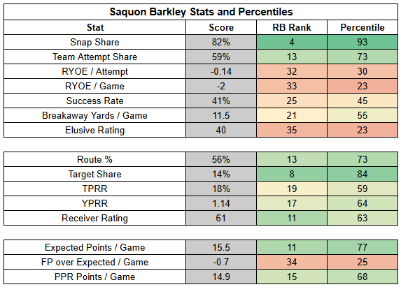 Saquon Barkley hasn't been nearly as explosive as expected this year, but his success rate has actually been pretty strong.