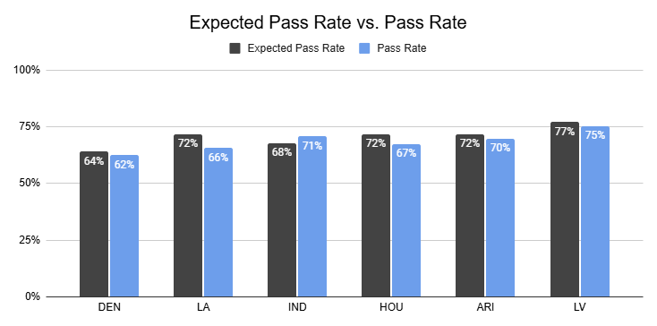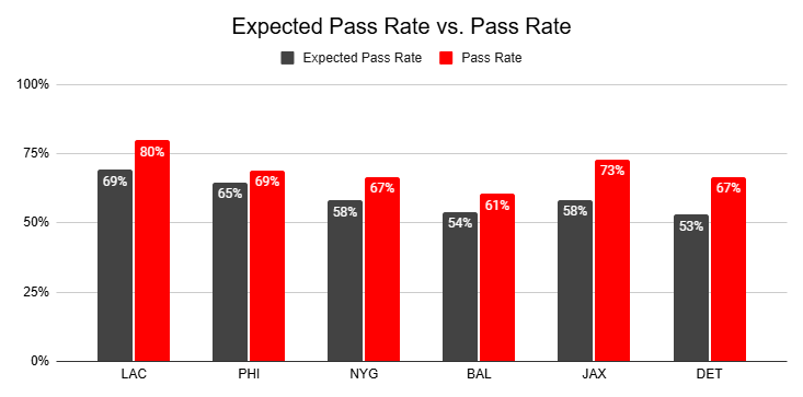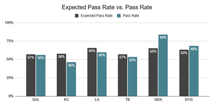 Shockingly, the Eagles have the highest single-game pass rate this year, turning in an 84% mark against the Broncos.