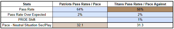 In the season-long numbers, the Patriots have a lean to the pass. Their 2% PROE ranks eighth highest. But as we saw last week, they are comfortable with a run-first approach when controlling a game. If they need to lean on the pass, they're more than willing to. But they aren't committed to prioritizing the pass in every game environment.